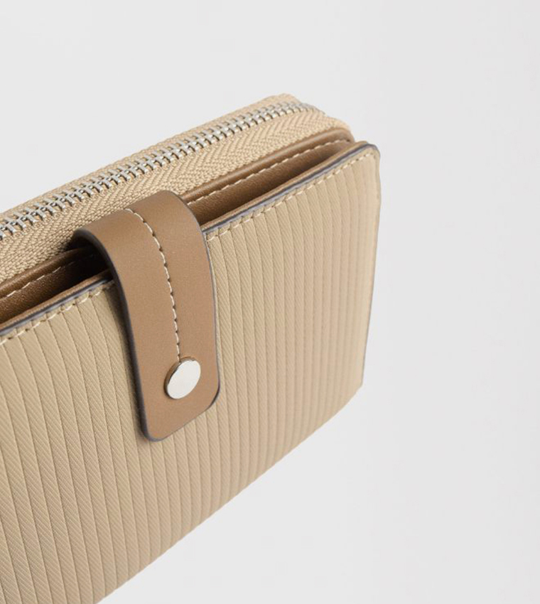 کیف پول متوسط با بافت مخملی. جای کارت و اسکناس با دکمه فشاری. جای سکه با زیپ.