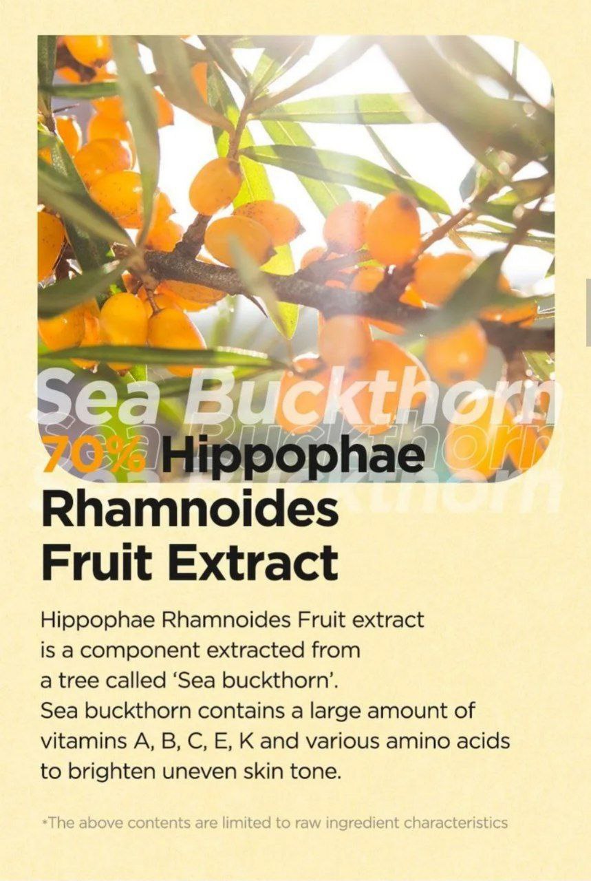 💕حاوی 70 درصد عصاره میوه هیپوفا رامنوئیدس، که برای رنگ ناهموار پوست مفید است.🌸
